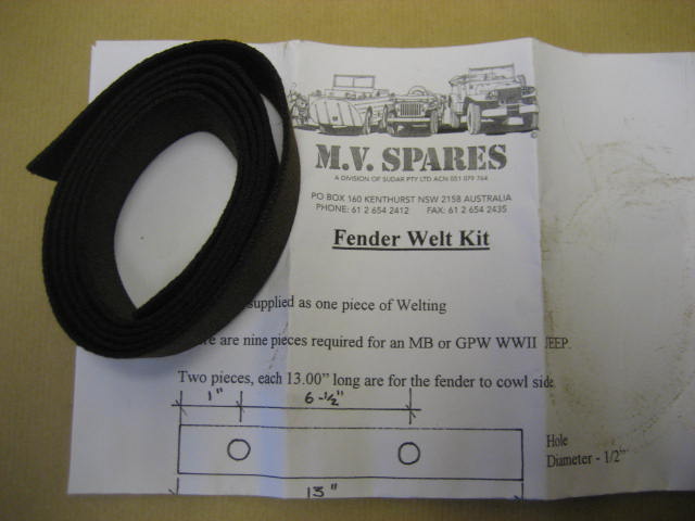 "Fender welt kit" Dette er materialet som skal ligge mellom skjerm og karosseri. Det følger med en beskrivelse på lengder og plassering i settet.