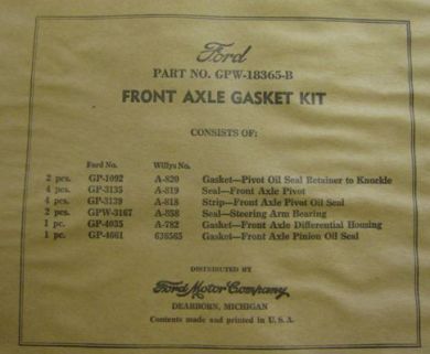 Pakningsett til frontaksel for Wllys MB og Ford GPW.
